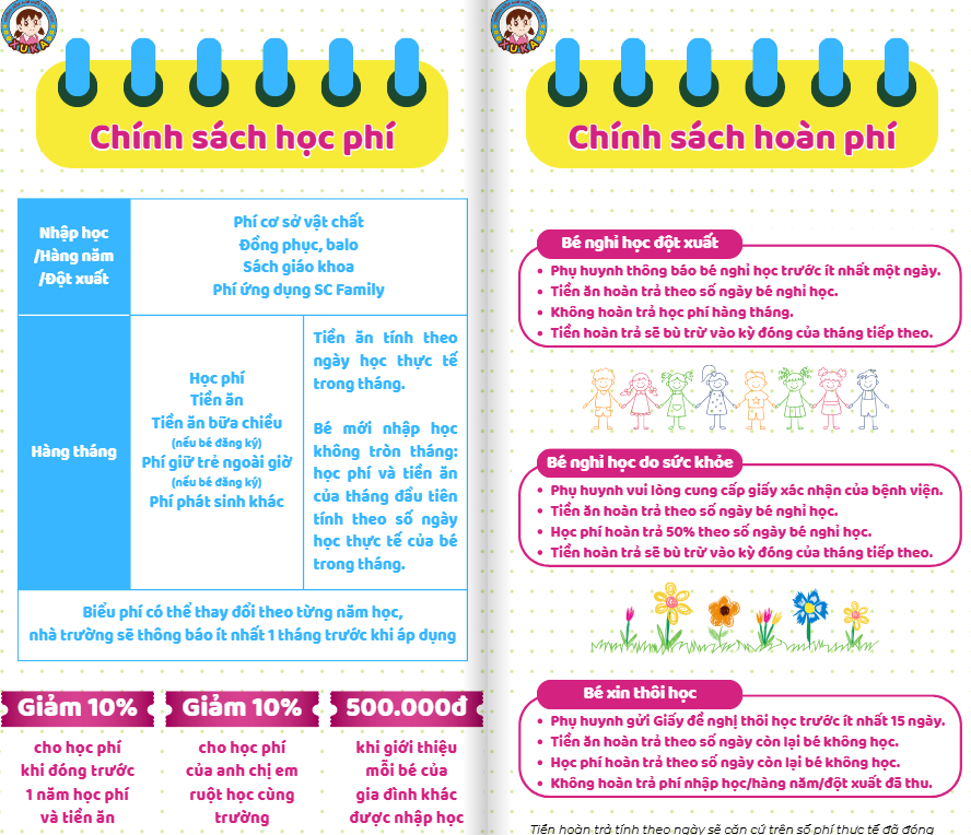 Trường Mầm Non Bé Xuka áp dụng các chính sách ưu đãi như sau: