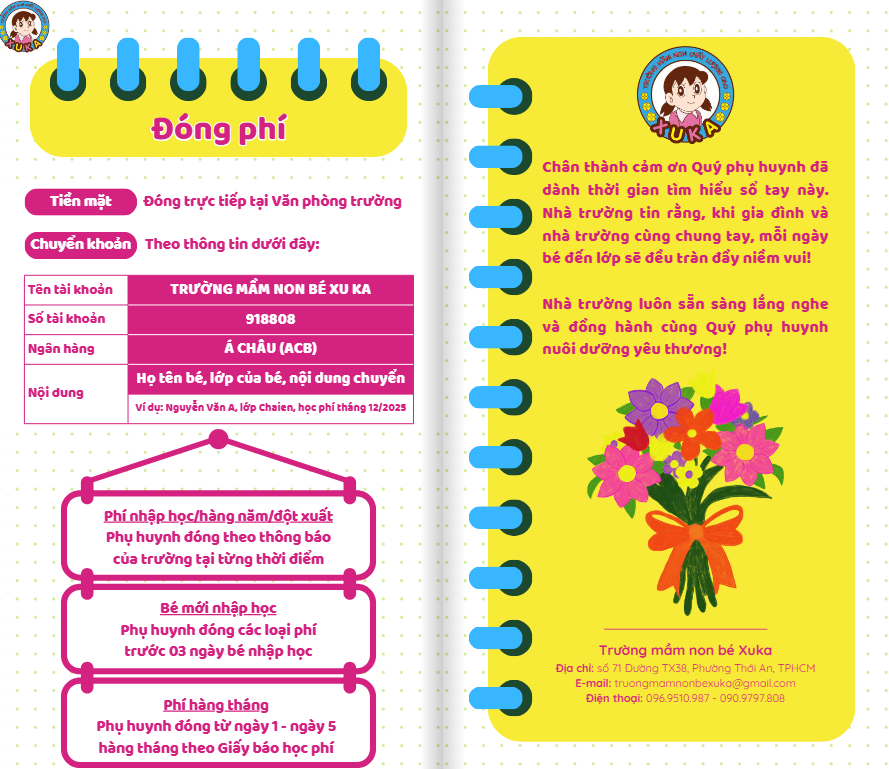 HỌC PHÍ TẠI TRƯỜNG MẦM NON BÉ XUKA