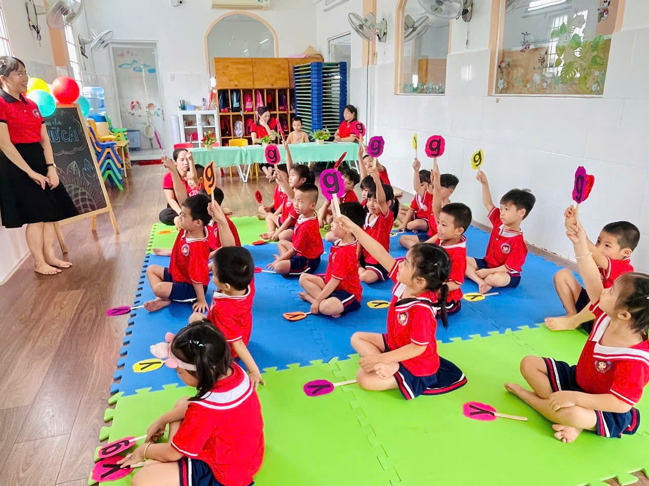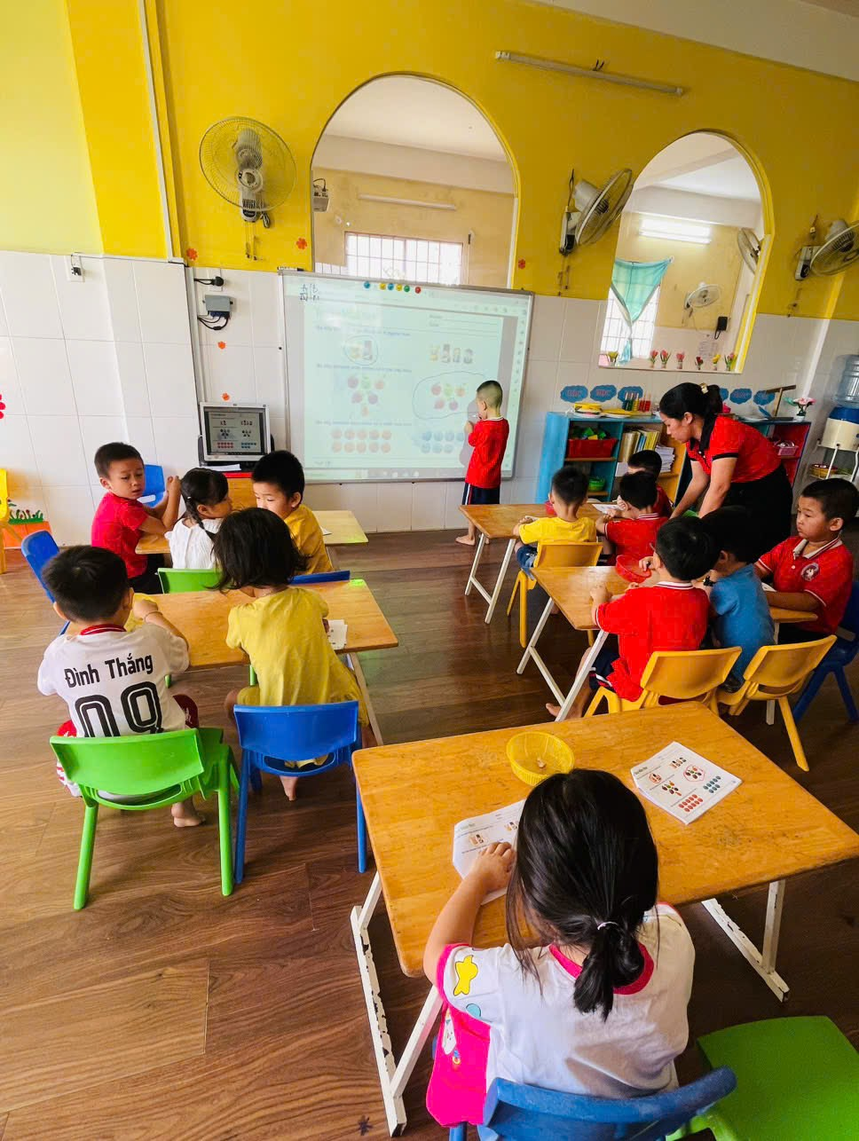 Hoạt động học toán được lồng ghép qua đồ dùng trực quan, trò chơi, giúp trẻ hiểu chứ không học vẹt.