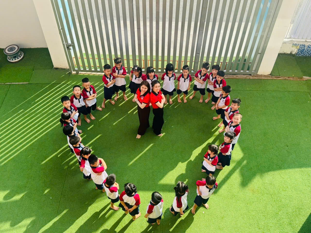 Nhà trường không đặt nặng việc học chữ sớm hay chạy theo thành tích, mà tập trung giúp trẻ phát triển toàn diện: khỏe mạnh – tự tin – lễ phép – biết yêu thương và chia sẻ.
